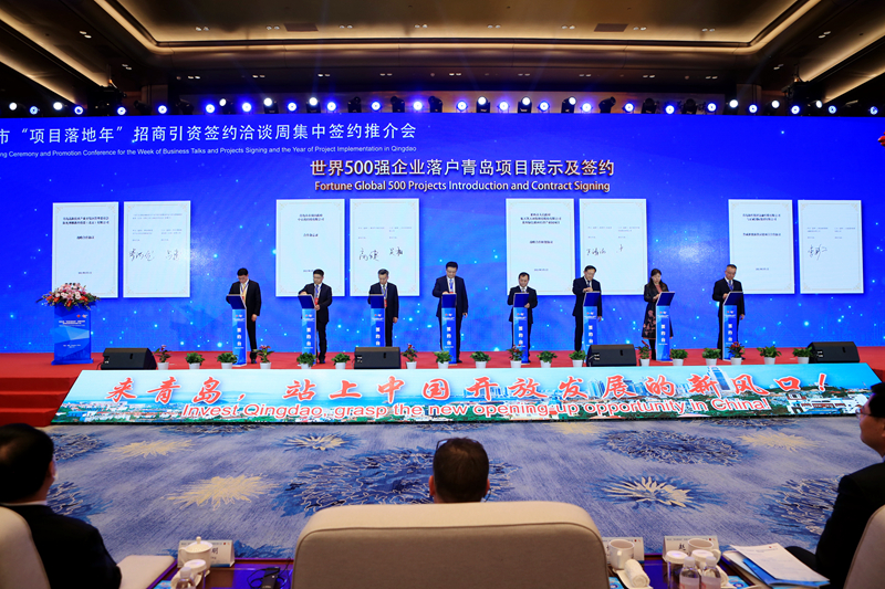 3月1日下午,青島市“項目落地年”招商引資項目洽談周簽約推介會在國際會議中心舉行。10個世界500強企業落戶青島項目、10個2021年青島市重點落地產業項目進行了簽約,總投資約526億元。
